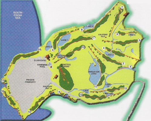 The signature 17th is a 168 yard par-3. It plays slightly downhill and the South China Sea covers three sides of the green. The club selection is critical as the prevailing winds come into play daily.