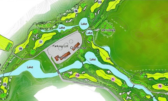 - Dragon Course: With reference to basic planning of M&K Co, (Sato Kentaro), Japan, this course was planned by Chairman Lee Dae-bong, Charm Vit Group on the basis of previous experiences in planning Yanjy Haeran River CC (China, 36 holes) and Kunming CC (China, 54 holes), and constructed by Japanese golf course shaper in Japan with experiences over 20 Asia reputed golf courses as well as Yanji Haeran River CC (China), Namchon CC (Korea) and Busan Tongdosa CC.