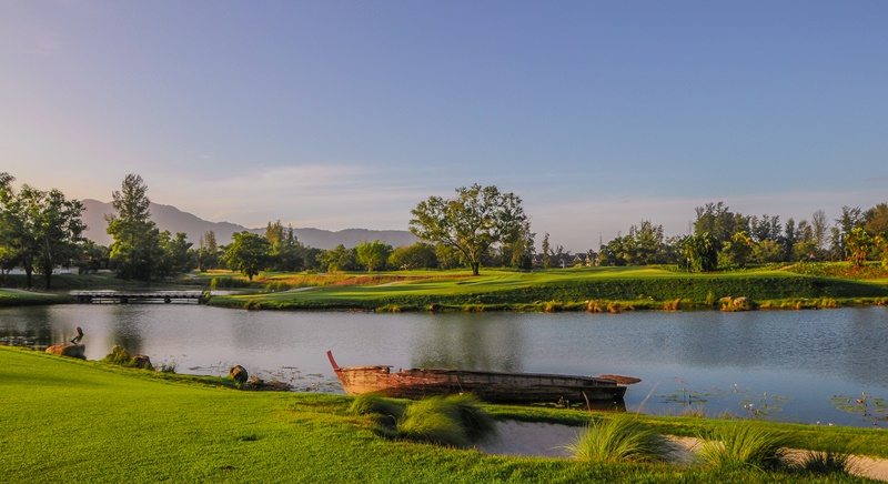 Golf at Blue Canyon Country Club, Lakes Course (excellent layout with the best finishing holes in Phuket).